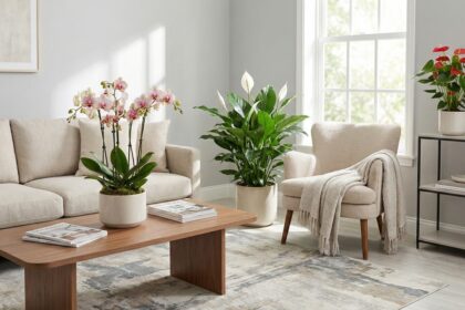 A Phalaenopsis, estrela das orquídeas, continua firme como símbolo de sofisticação minimalista. Suas hastes elegantes ocupam pouco espaço e suas flores podem durar meses quando recebem luz indireta. É a escolha de quem quer um visual de revista sem regas diárias.