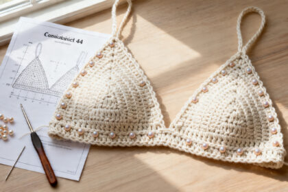 Com pontos básicos, brilho moderado e molde enxuto, o biquíni de crochê com miçangas confirma que a moda praia artesanal continua forte — unindo praticidade, personalização e estilo em um único projeto.