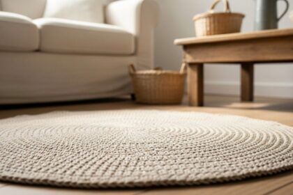 A peça se adapta à sala, ao quarto ou ao banheiro, delimita áreas e oferece aquela sensação de aconchego que todo cômodo precisa. Nos bastidores, a escolha certa de fio e agulha decide o tamanho final e garante que o trabalho permaneça plano do centro às bordas.